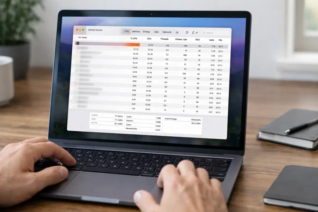 Look for anything staying above 20–30% when you’re doing nothing.
