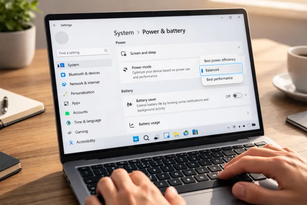 Set Power mode to Balanced (or Best power efficiency).